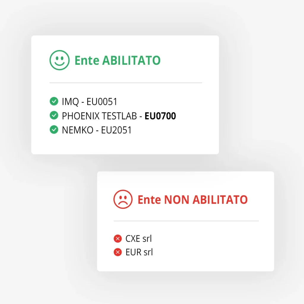 Molti certificati CE emessi da venditori o importatori non notificati (anche se validi ai fini di legge) non hanno lo stesso valore di una certificazione rilasciata da un ente notificato indipendente.